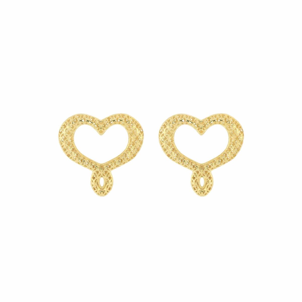 Coppia di orecchini a lobo cuore maman con trama realizzati in argento 925 con galvanica oro giallo ad alto spessore e resistenza.