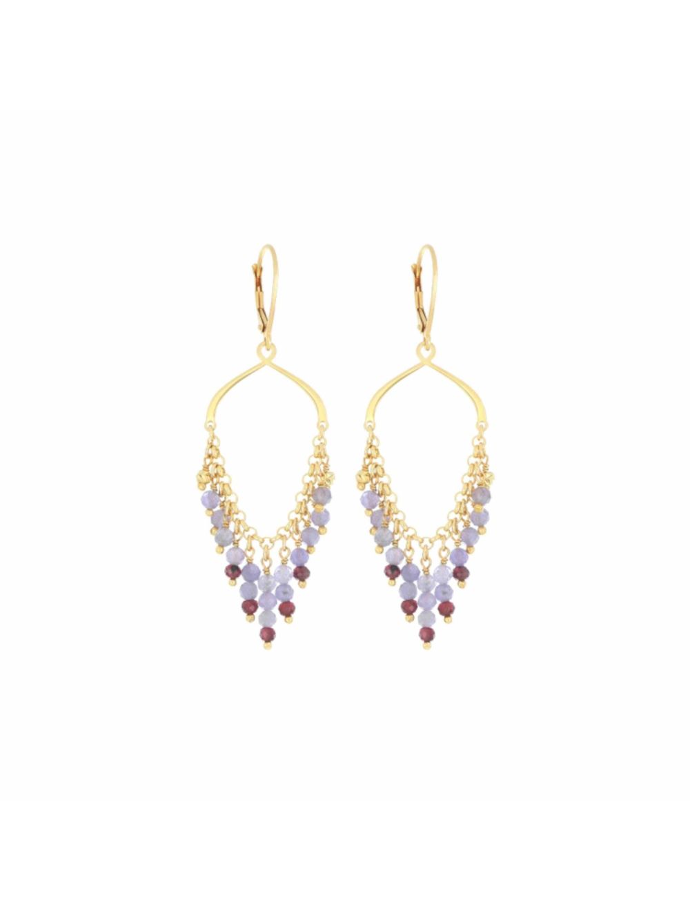 Maman et Sophie COPPIA DI ORECCHINI MONACHELLA FRANGE TANZANITE E GRANATO