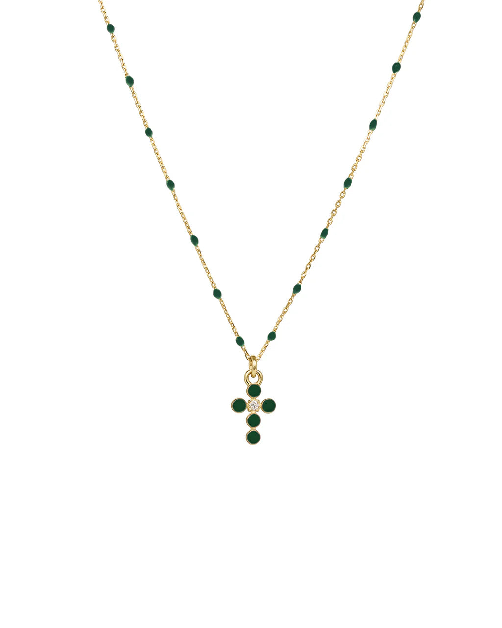 Rue des Mille Girocollo Croce smalto e diamante lab-grown ORO18KT